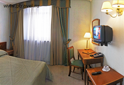 Двухместный Классический. Однокомнатный номер средней площадью 21 кв.м. Вид на город или парк отеля. Ширина кроватей 110 см - 13 номеров, 160 см - 6 номеров. В 2-х номерах установлены кресла-кровати. Количество номеров – 19.