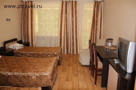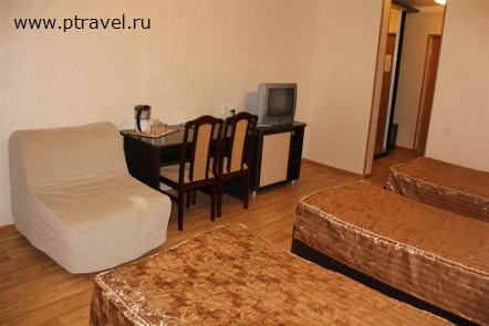 В гостинице пансионата расположены 43 номера, из них 27 номеров – «стандарт», 16 номеров – «улучшенный стандарт». Во всех номерах есть лоджии. Мы можем предложить Вашему вниманию 3 одноместных номера, 36 двухместных номеров и 4 трёхместных номера.