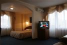 2-местный 1-комнатный "Стандарт+". Жилая комната 14 квадратных метра с двумя односпальными кроватями 85*200, пол - ковролин, на окнах - жалюзи и прозрачные занавеси, телевизор, холодильник, кондиционер, балкон в каждом номере 3-5 м2, прихожая и санузел 4 квадратных метра, сушка для белья на балконе, тумбочка и светильник возле каждого спального места, шкаф для верхней одежды и главных уборов, подставка для багажа, стулья для каждого спального места, столик, шкаф для одежды с полочками и плечиками (4 шт. на проживающего), комплект постельных принадлежностей и белья, 3 махровых полотенца для каждого спального места щетки для одежды и обуви, пепельница, набор посуды для питьевой воды, ключ для открывания бутылок, санузел: кафель, ванна, умывальник, унитаз, бойлер.