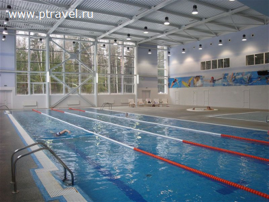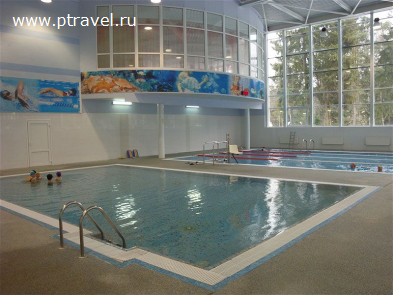 закрытый бассейн, 25м, 4 дорожки, (глубина от 1,4 до 1,8 м температура воды 29 градусов)