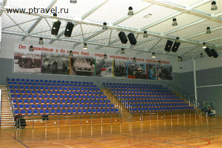 многофункциональный спортивный зал с трибунами для зрителей и электронными табло