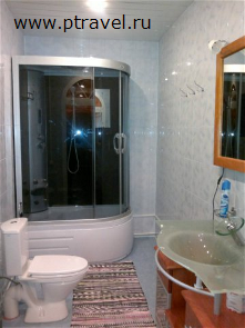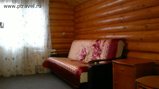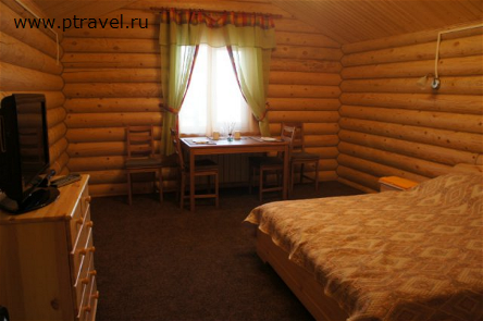 Двухместный коттедж с сауной (1 доп. место): спальня с двуспальной кроватью, санузел с душевой кабиной, сауна на 2-3 чел., холодильник, телевизор (плазменная панель) со спутниковым телевидением, чайник.