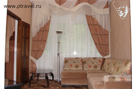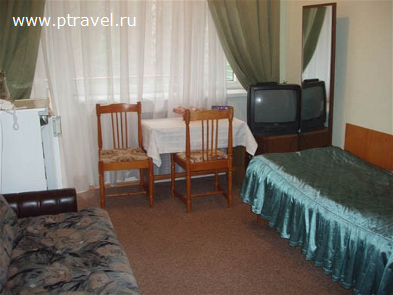 В 1-местных 1-комнатных номерах категории «Люкс» (площадь номера 20 кв.м.): телевизор, холодильник, телефон, набор посуды, балкон, ванная комната: душ, туалет, раковина.